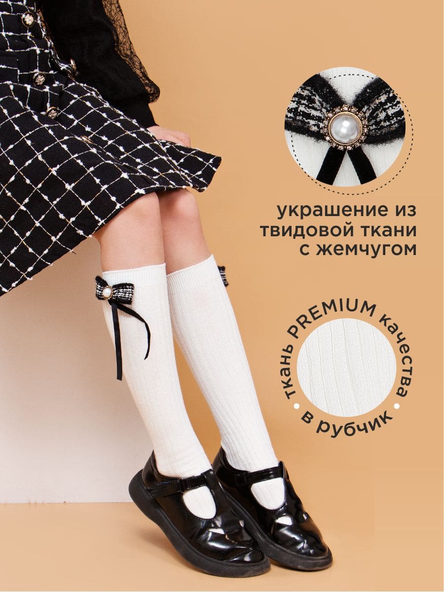 Детские гольфы, с декором в форме бантика на резинке. Модель выполнена из натурального, гипоаллергенного материала.