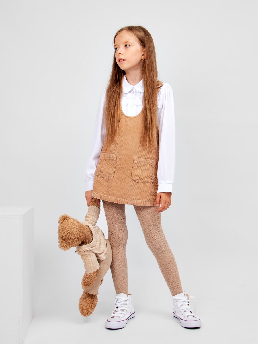 Однотонные колготки, для девочек, с ажурным рисунком выполнены из высококачественной пряжи. Легкость при надевании и комфортное облегание по ножке обеспечивает эластан с обкрученной нитью. Использование длинноворсового хлопка придаёт колготкам исключительную мягкость и уют.