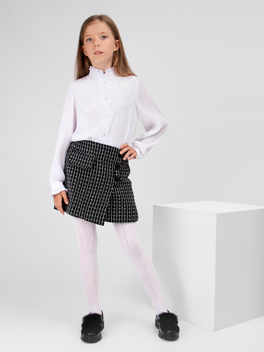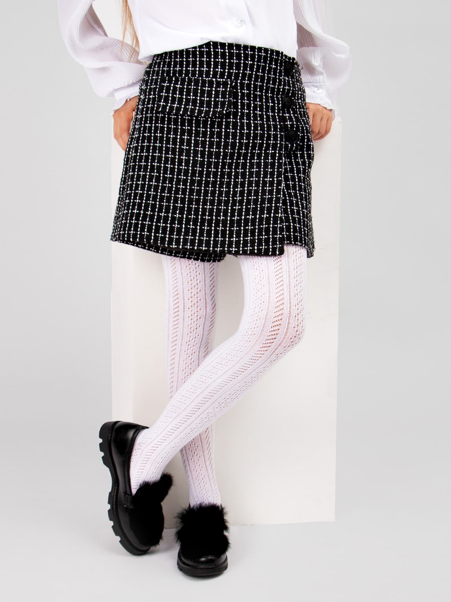 Однотонные колготки, для девочек, с ажурным рисунком выполнены из высококачественной пряжи. Легкость при надевании и комфортное облегание по ножке обеспечивает эластан с обкрученной нитью. Использование длинноворсового хлопка придаёт колготкам исключительную мягкость и уют.
