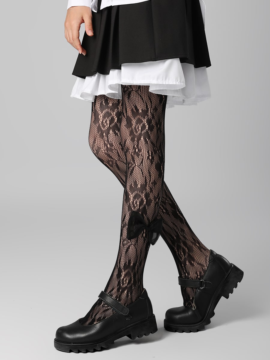 Лёгкие, капроновые колготки для девочки, декорированные ажурным узором и атласным бантиком. Модель прекрасно подойдёт как для торжественных мероприятий, так и для повседневного образа.