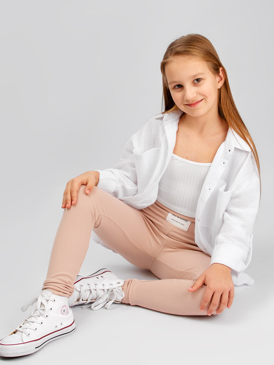 Лосины для девочки Соль&Перец. Идеальная посадка, мягкая дышащая ткань создают комфорт и удобство. Ткань в рубчик, хорошо тянется, что обеспечивает полное прилегание к телу, позволяет заниматься любым видом активности.