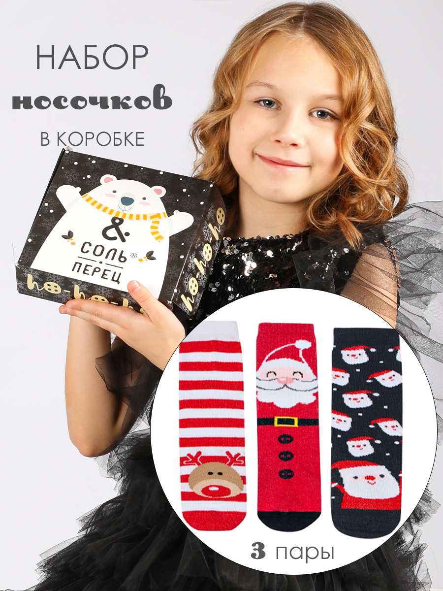 Носки 3 шт Соль&Перец в подарочной коробке синий-красный