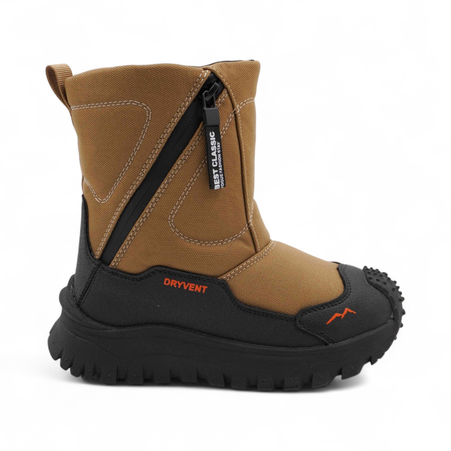 Материал: Верх обуви выполнен из непромокаемого текстиля, что обеспечивает надежную защиту от снега и влаги. Вставки из эко-кожи дополнительно защищают мысок и пятку сапожек от механических повреждений. Подкладка и стелька из искусственного меха, которая обладает отличными теплоизоляционными свойствами.