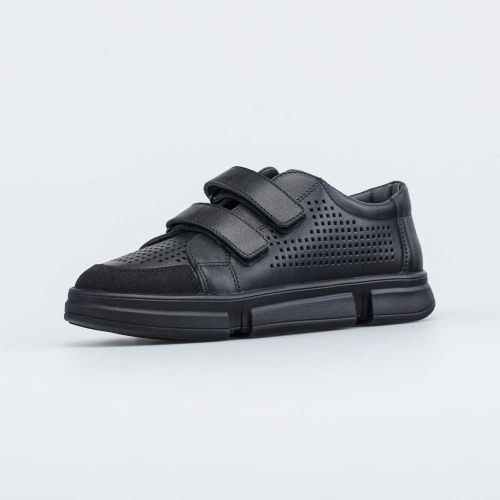 Черно-белые полуботинки для мальчика-подростка стилизованы под кожаные кеды. Они отлично подходят как для повседневной носки, так и в качестве сменной обуви в школу.
