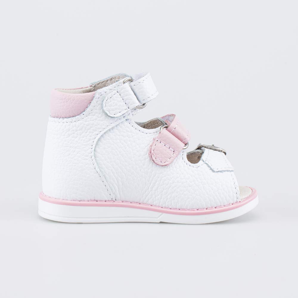 Сандалии с липучками-велькро, которые позволяют быстро обувать и разувать ребенка. Ремешок в носочной части дает возможность отрегулировать детскую обувь по полноте.
