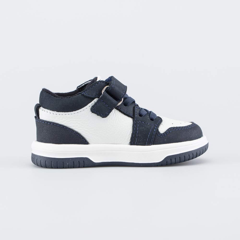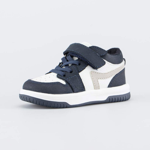 Детские кожаные полуботинки выполнены в сочетании двух цветов: синего и белого. Подходят для мальчика, который только начинает ходить.