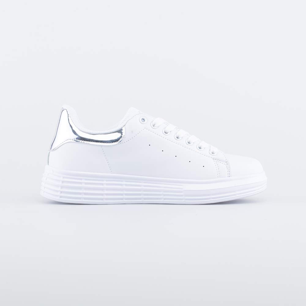 Модель полностью выполнена в белом цвете. Лаконичный дизайн дает возможность сочетать ее с разными вариантами одежды.
