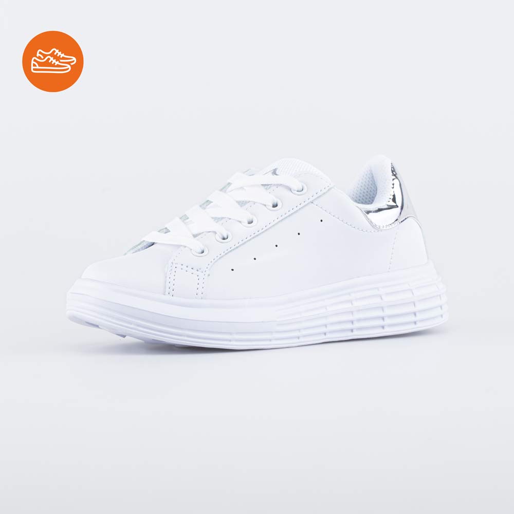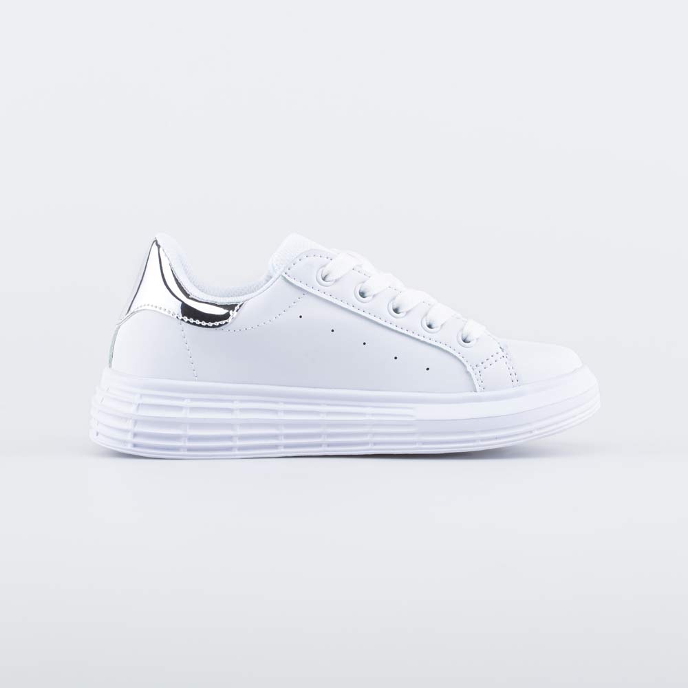 Модель полностью выполнена в белом цвете. Лаконичный дизайн дает возможность сочетать ее с разными вариантами одежды.