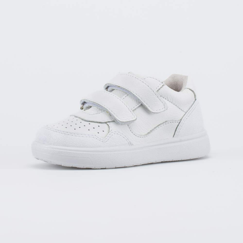 Детские кожаные полуботинки выполнены в белом цвете и подходят для ребенка школьного возраста.
