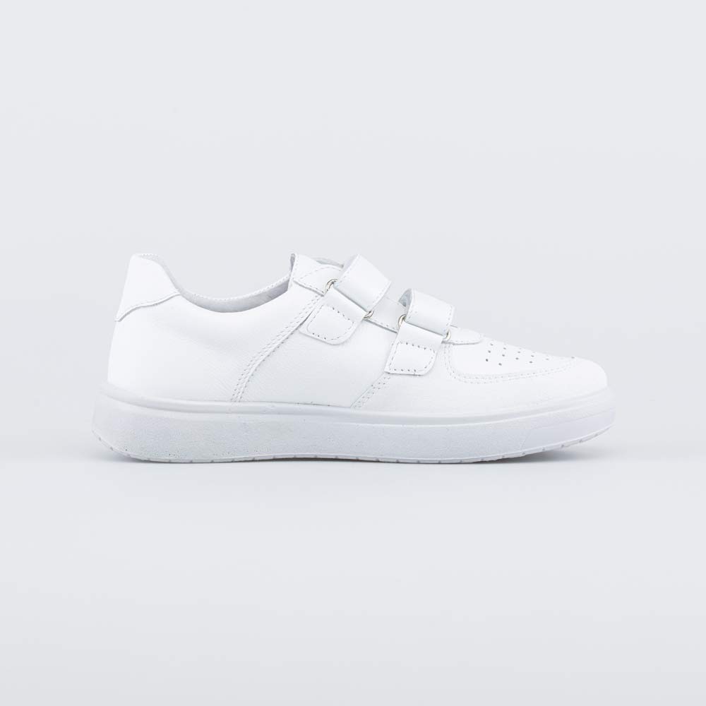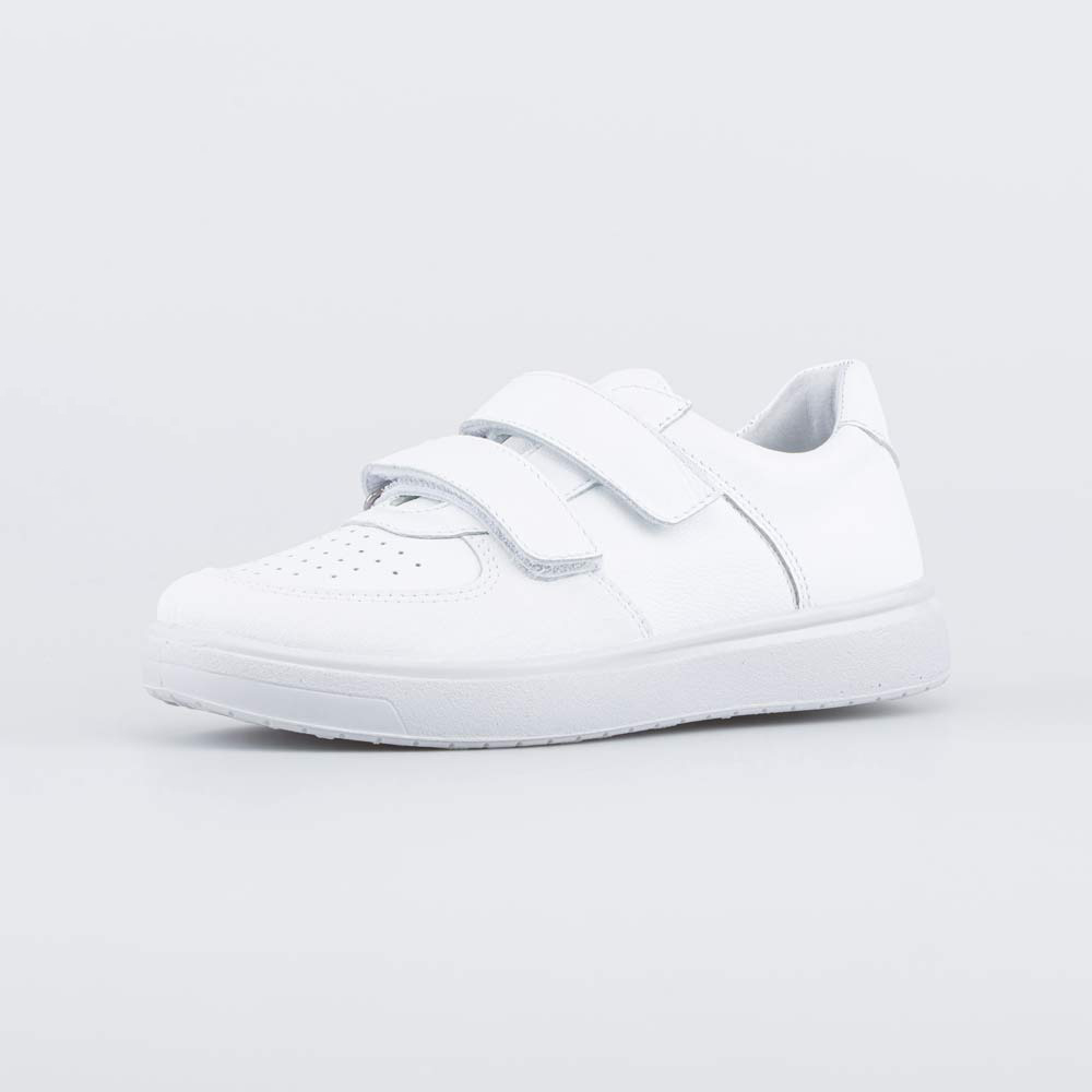 Белая подошва из ПУ (полиуретана) хорошо амортизирует и не оставляет следов на напольных покрытиях, поэтому полуботинки подходят в том числе в качестве сменной обуви в школу.