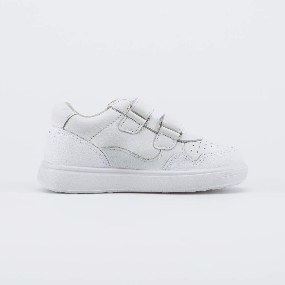 Детские кожаные полуботинки выполнены в белом цвете и подходят для ребенка дошкольного возраста.