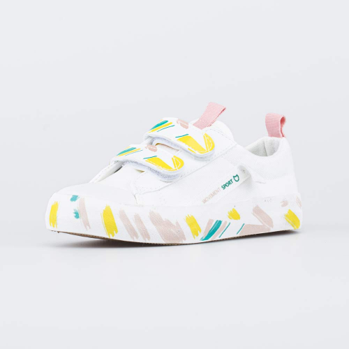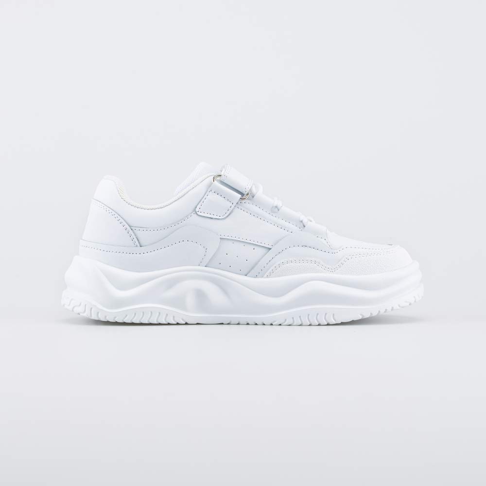 Кожаные кроссовки для девочки школьного возраста выполнены в модном белом цвете.
