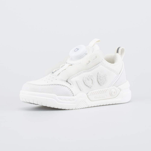 Верх этих модных кроссовок выполнен из натуральной кожи, язычок и манжет – из сетчатого материала. Дополнительную вентиляцию обеспечивает перфорация. Внимание привлекает тактильный декор Я люблю Котофей.