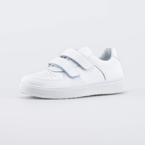 Белые полуботинки для мальчика стилизованы под кожаные кеды. Они отлично подходят как для повседневной носки, так и для праздничных образов.