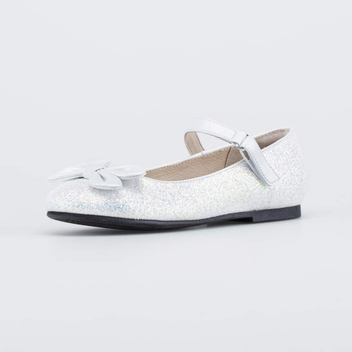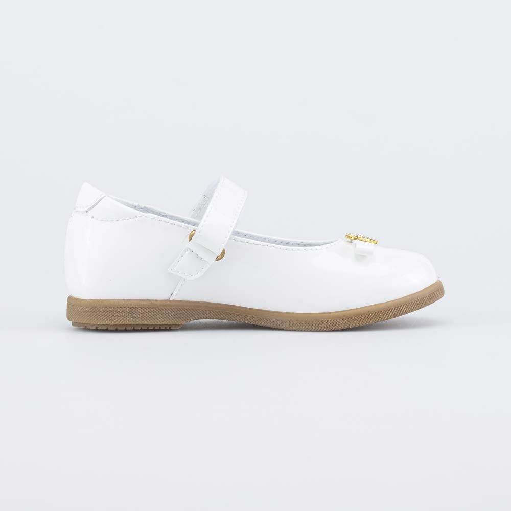 Праздничные туфли белого цвета, украшенные бантиком, станут отличным дополнением образа юной модницы.