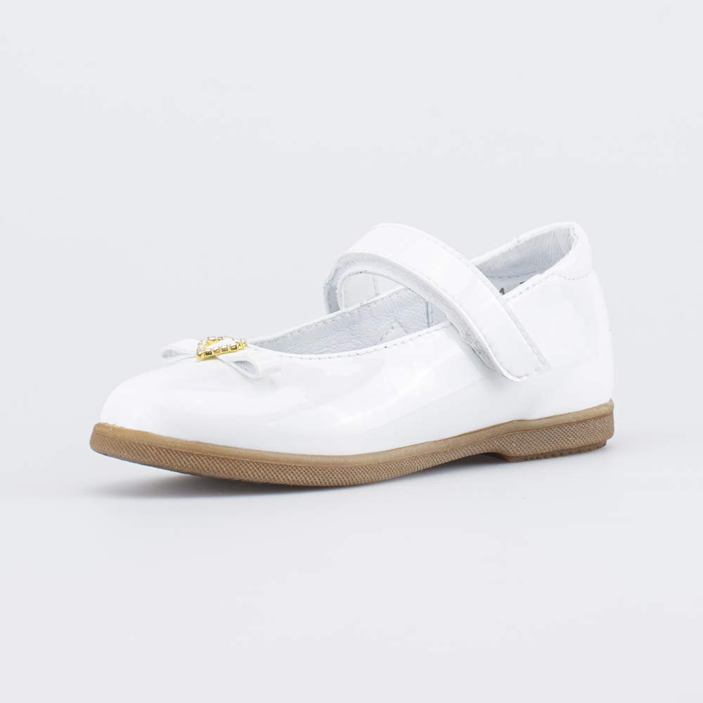 Праздничные туфли белого цвета, украшенные бантиком, станут отличным дополнением образа маленькой модницы.