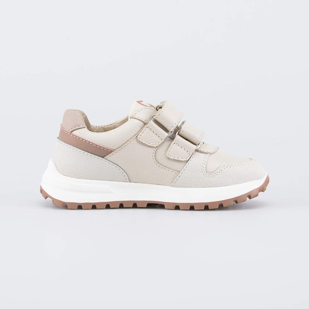 Бежевые кроссовки с шоколадным акцентом созданы с учетом возрастных особенностей стопы и подходят для девочки дошкольного возраста.