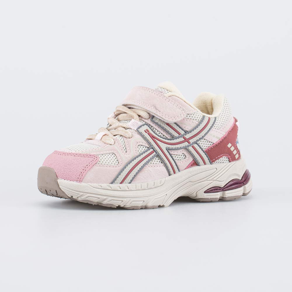 Удобные детские кроссовки выполнены в сочетании трендовых цветов (розового и бежевого) и подходят для девочки дошкольного возраста.