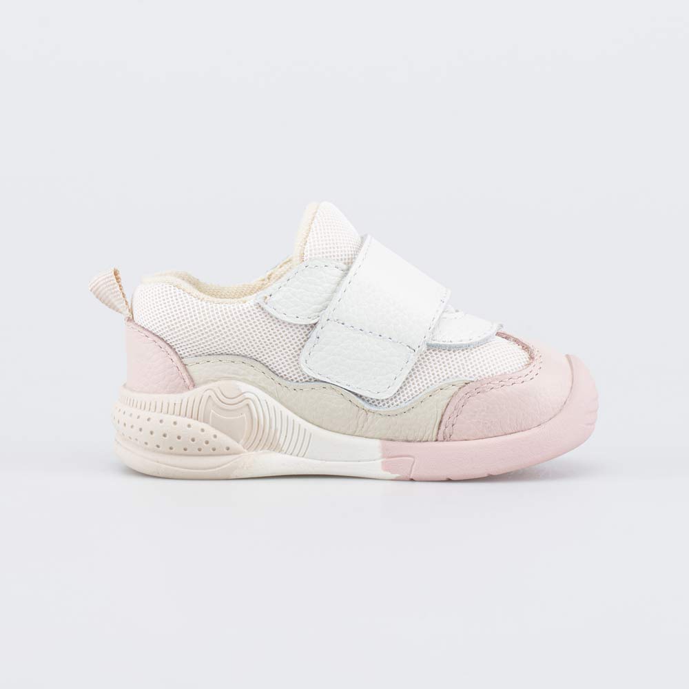 Модные кроссовки с липучками, украшенными забавным принтом, подходят для девочки, которая уже начала активно ходить.