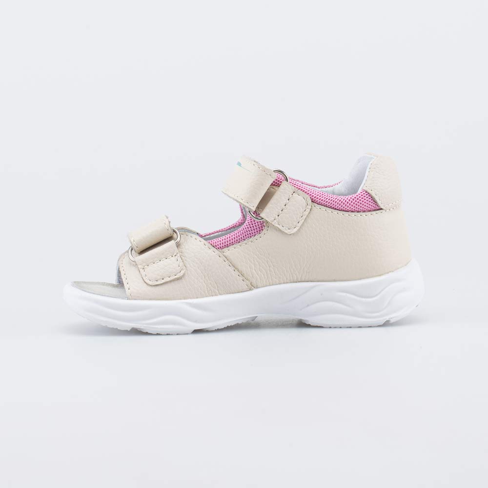 Детские сандалии имеют верх из натуральной кожи, которая дополнена дышащим текстилем в сеточку. Подкладка и несъемная стелька из белой натуральной кожи обеспечивают гигиенические свойства и защищают носочки от окрашивания.