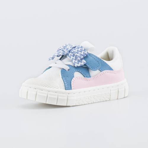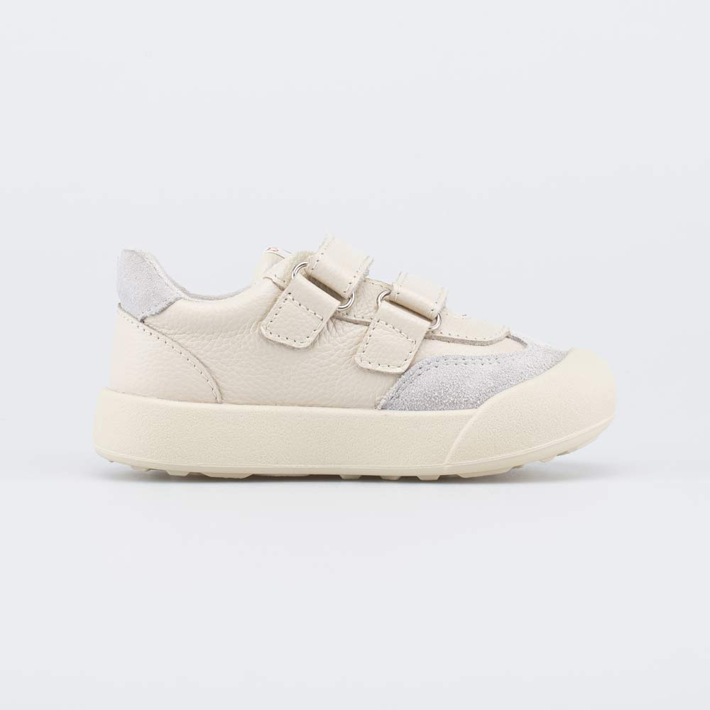 Эти светлые кеды имеют верх из гипоаллергенной и дышащей натуральной кожи разных фактур: гладкая кожа, велюр. Подкладка из натурального хлопка обеспечивает максимально комфортный микроклимат внутри детской обуви. Формованная основа съемной хлопковой стельки амортизирует и поддерживает стопу.