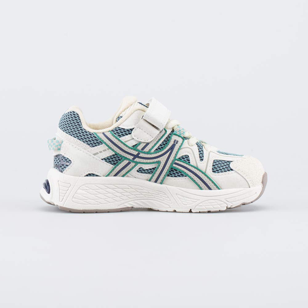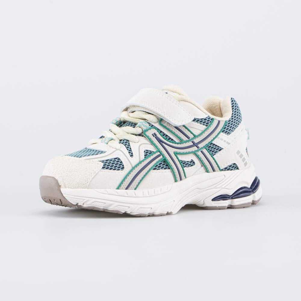 Удобные кроссовки выполнены в сочетании трендовых цветов (шалфейного и бежевого) и подходят для детей дошкольного возраста.