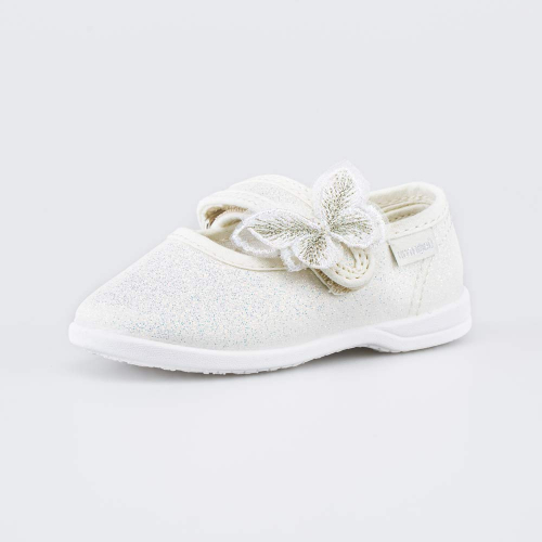 Нарядные туфли для девочки, украшенные бабочкой, подходят для праздника в детском саду или для семейной фотосессии.