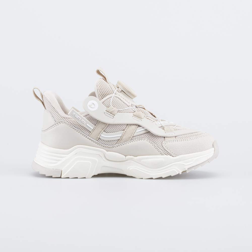 Бежевые кроссовки для девочки выполнены в модном тренде на высокой подошве, которая создает ощущение устойчивой и массивной обуви, при этом сохраняя анатомические свойства.