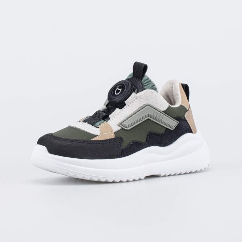 Верх этих детских кроссовок изготовлен из гипоаллергенного и легкого в уходе текстиля (полиэстер), который обеспечивает хорошую воздухопроницаемость обуви. Фигурные детали из натуральной кожи формируют каркас модели.