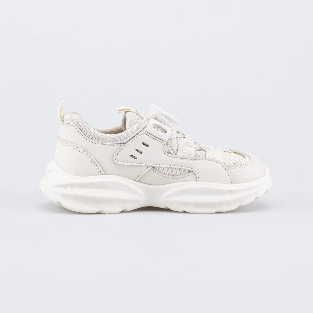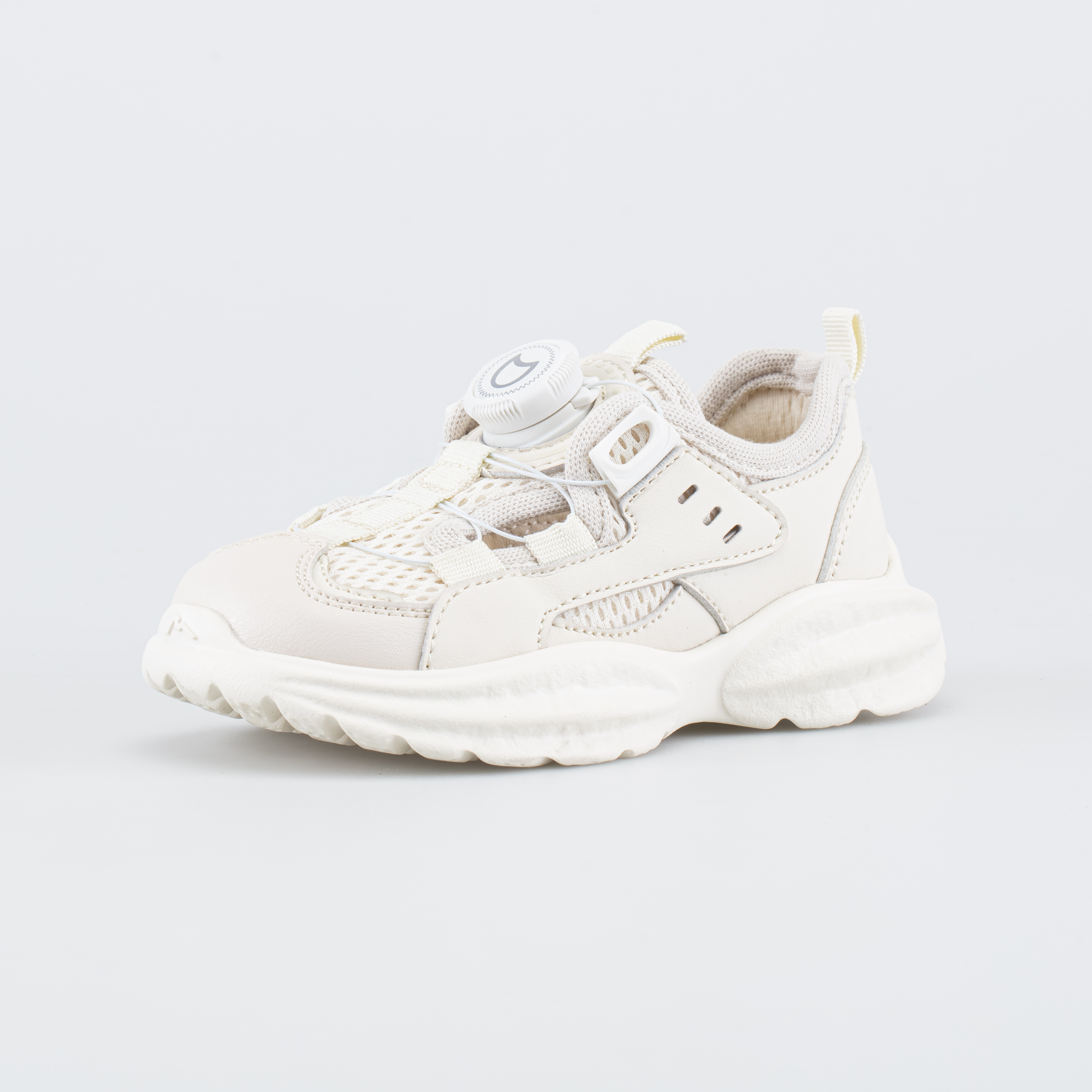 Легкие бежевые кроссовки с системой быстрой шнуровки разработаны для девочки дошкольного возраста.