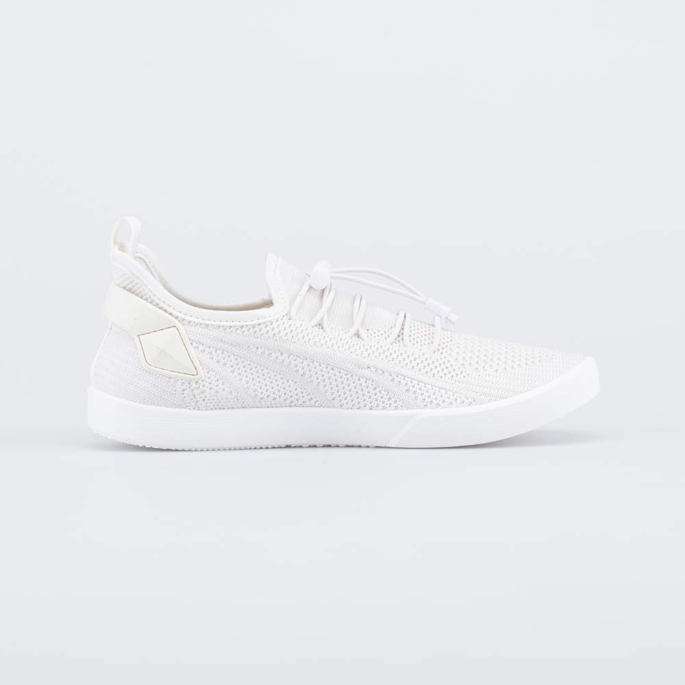Бежевые кеды имеют верх из вязаного текстиля, обладающего высокой воздухопроницаемостью. В такой дышащей обуви комфортно даже при длительной носке.