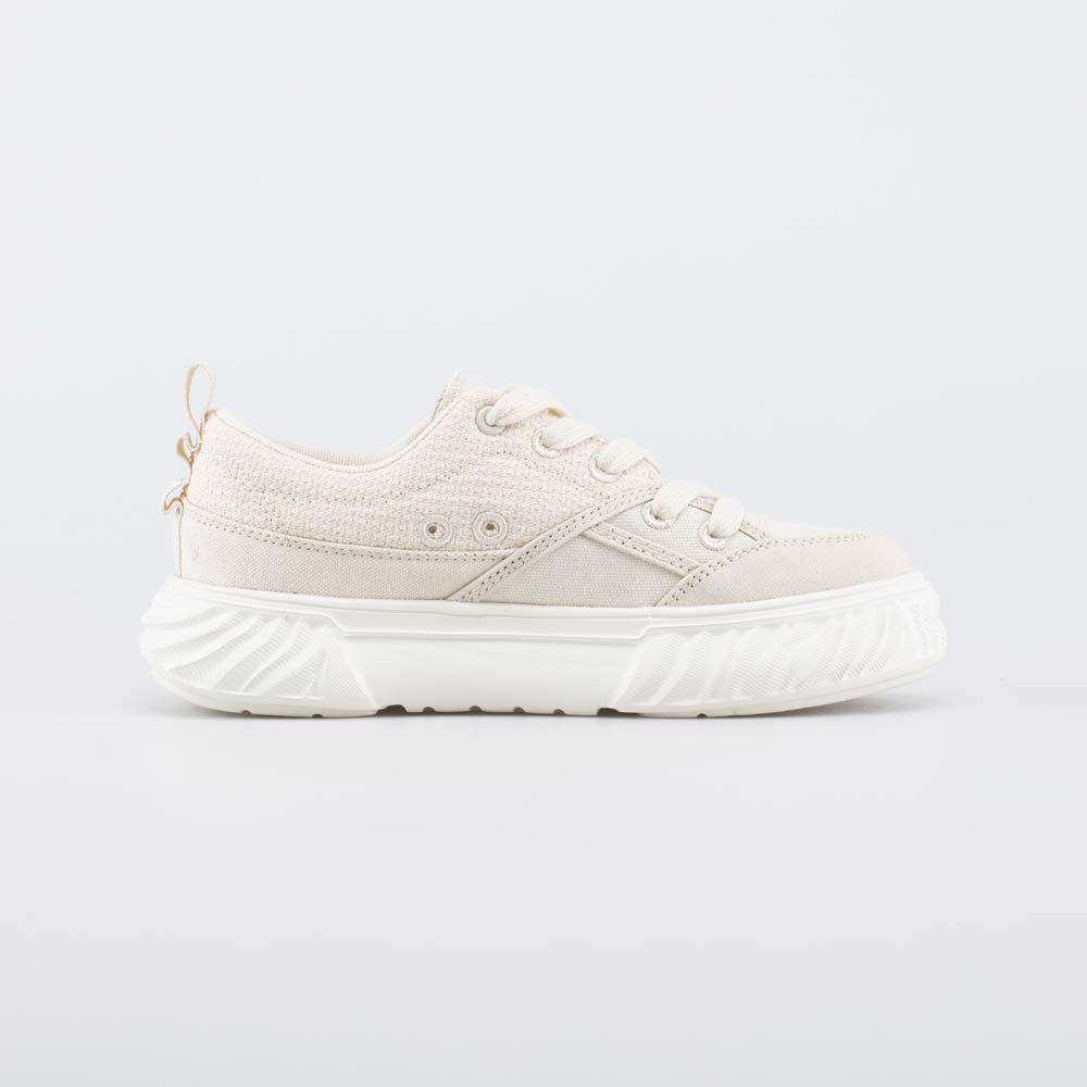 Модные кеды для девочки выполнены в трендовом бежевом цвете и привлекают внимание массивной фактурной подошвой.