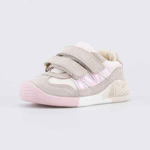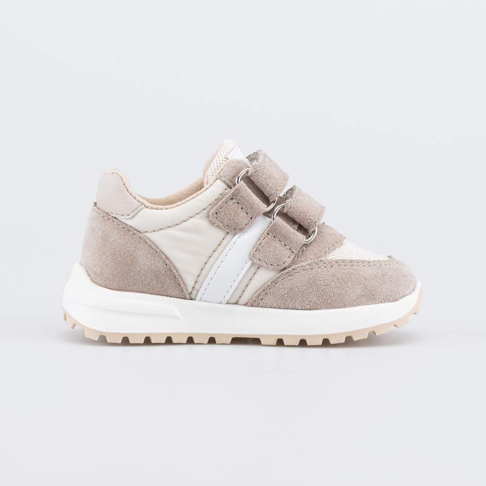 Удобные бежевые кроссовки созданы с учетом особенностей детской стопы и подходят для девочки, которая уже начала уверенно ходить.