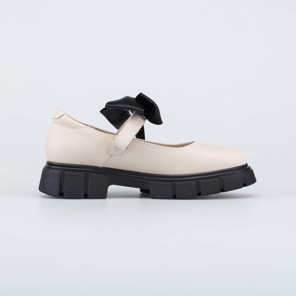 Кожаные туфли бежевого цвета подходят для девочки-школьницы.
