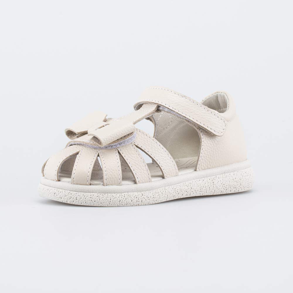 Детские сандалии имеют верх, подкладку и несъемную стельку из натуральной кожи – гипоаллергенного и дышащего материала, который обеспечивает высокие гигиенические свойства. Модель украшена объемным бантиком.