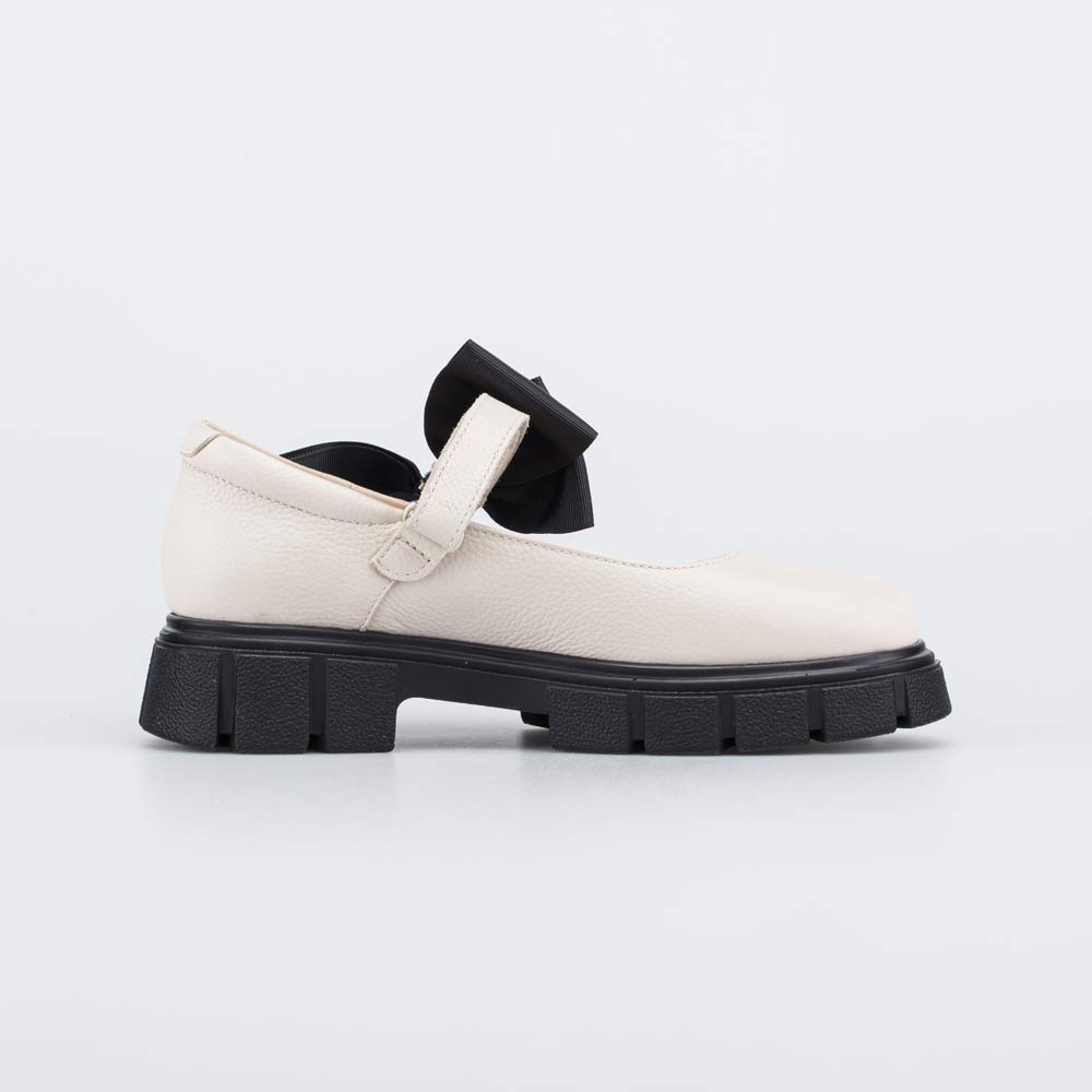 Кожаные туфли бежевого цвета подходят для девочки-подростка.