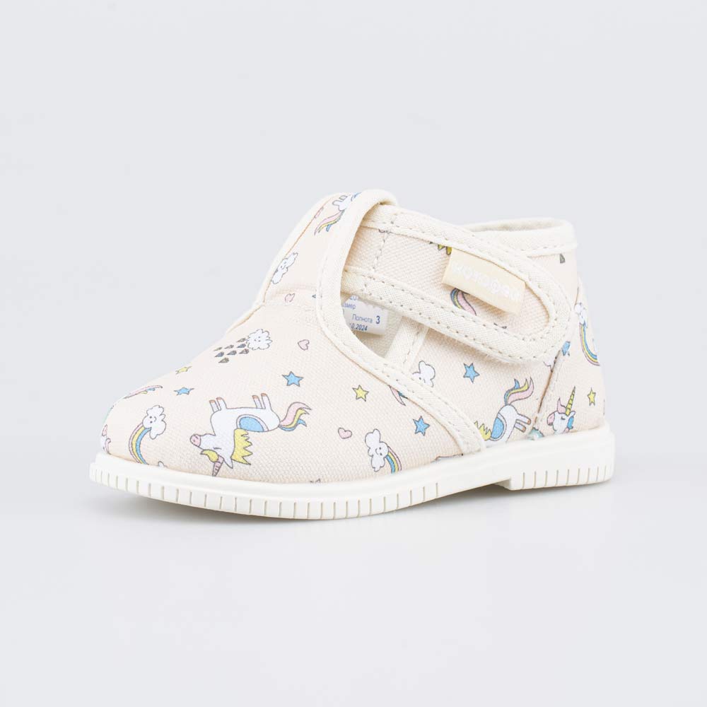 Верх, подкладка и стелька из хлопка обеспечивают максимально комфортный микроклимат внутри обуви. Стелька имеет небольшой подсводник, который мягко поддерживает стопу, но не мешает ей развиваться естественным образом.