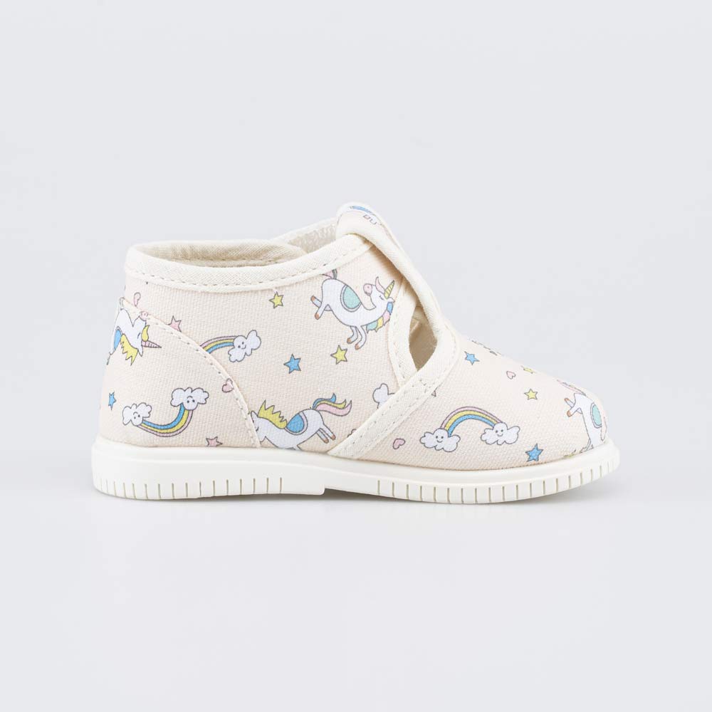 Детские туфельки, по всей поверхности украшенные принтом, подходят для девочки, которая только начинает ходить.