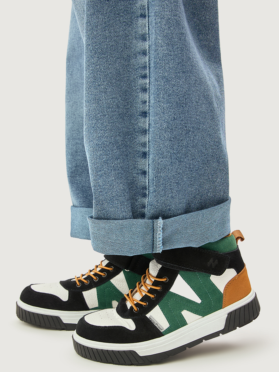 Липучка и эластичные шнурки позволяют точно настроить полноту и обеспечивают легкое одевание. Ботинки имеют спортивный дизайн, что делает их универсальными для школы и спортивных мероприятий. Подошва с протектором выполнена из термопластичной резины (TPR), обладает высокой износостойкостью и хорошей амортизацией, уменьшая нагрузку на ноги.