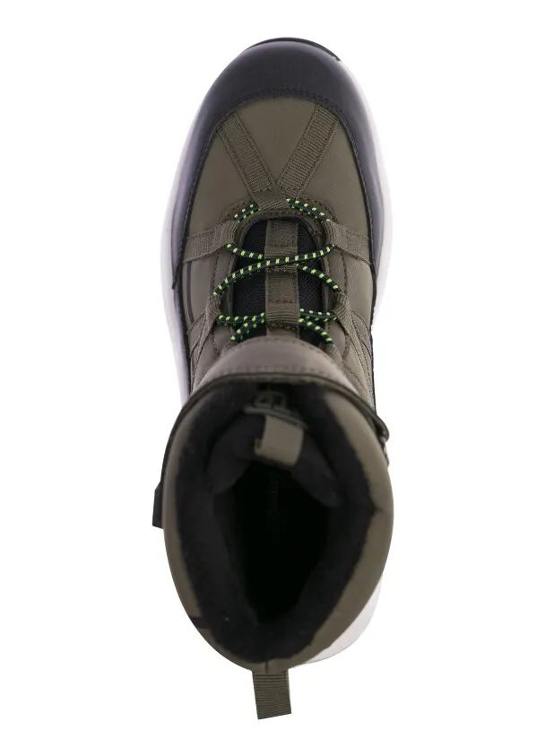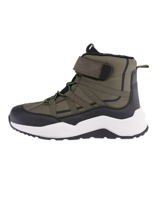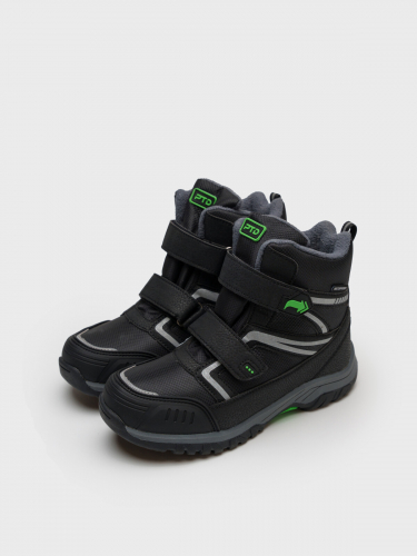Ботинки из искусственной кожи и текстиля с водоотталкивающими свойствами. Подкладка и съемная стелька выполнены из мягкого флиса. Формоустойчивый задник поддерживает стопу в правильном положении. Эргономичная форма колодки обеспечивает правильное формирование стопы ребенка. Эластичные шнурки и липучка создают удобство при обувании и надежно фиксируют ногу. Двухсоставная подошва из облегченной терморезины устойчива к истиранию. Рекомендованный температурный режим от +10°С до -5°С.