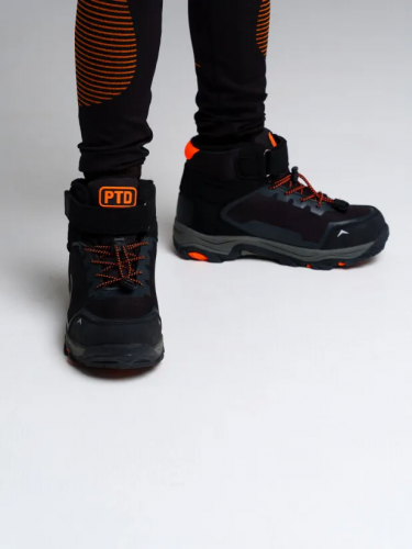 Конструкция верха изготовлена с использованием мембранных технологий. Усиленная защита носка и пятки специальными материалами. Подкладка и стелька выполнены из шерстяного меха 80%. Трехслойная стелька с фольгой, которая обеспечивает сохранение тепла в течение длительного времени. Формоустойчивый задник поддерживает стопу в правильном положении. Подошва имеет противоскользящий протектор. Удобная застежка-липучка и шнурок-утяжка. Рекомендованный температурный режим от 0°С до -20°С.