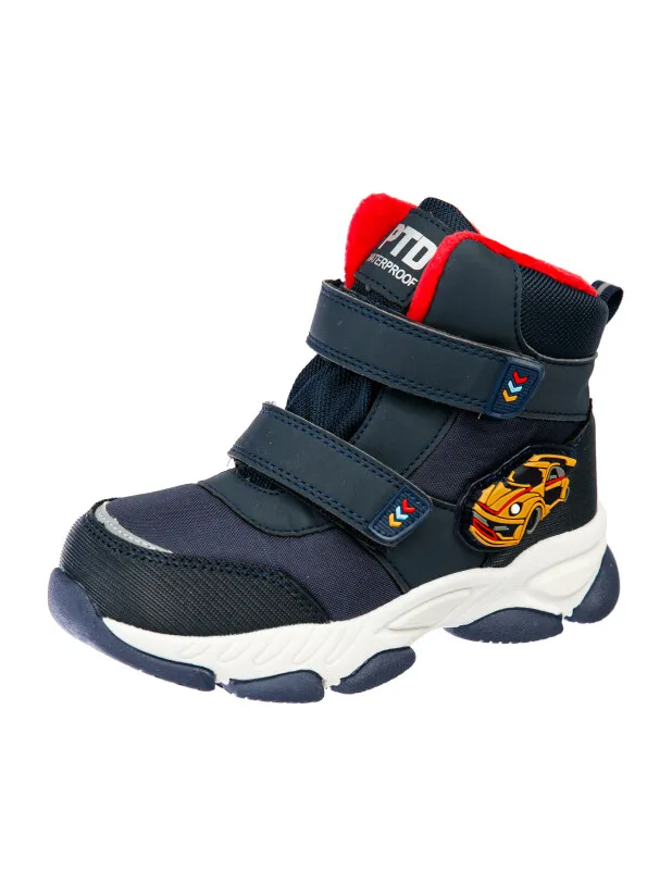 Конструкция верха изготовлена с использованием мембранных технологий. Усиленная защита носка и пятки специальными материалами. Подкладка из мягкого флиса. Съемная стелька выполнена из материала c высоким содержанием валеной шерсти 50% и обладает высокими теплозащитными свойствами. Формоустойчивый задник поддерживает стопу в правильном положении. Подошва имеет противоскользящий протектор. Удобная застежка-липучка. Рекомендованный температурный режим от 0°С до -15°С. Модель со светодиодной подсветкой, что позволяет хорошо видеть ребенка даже в темное время суток.