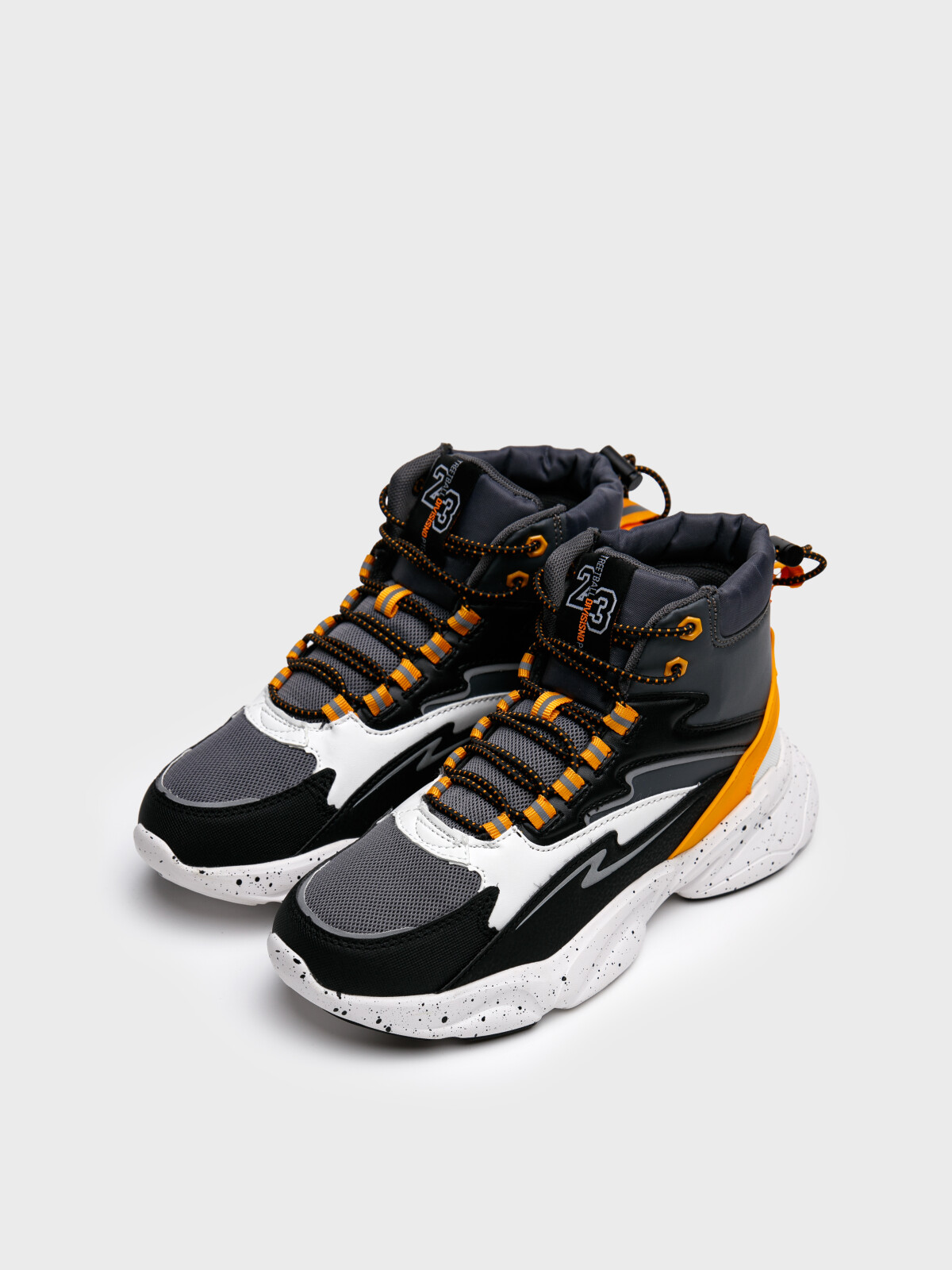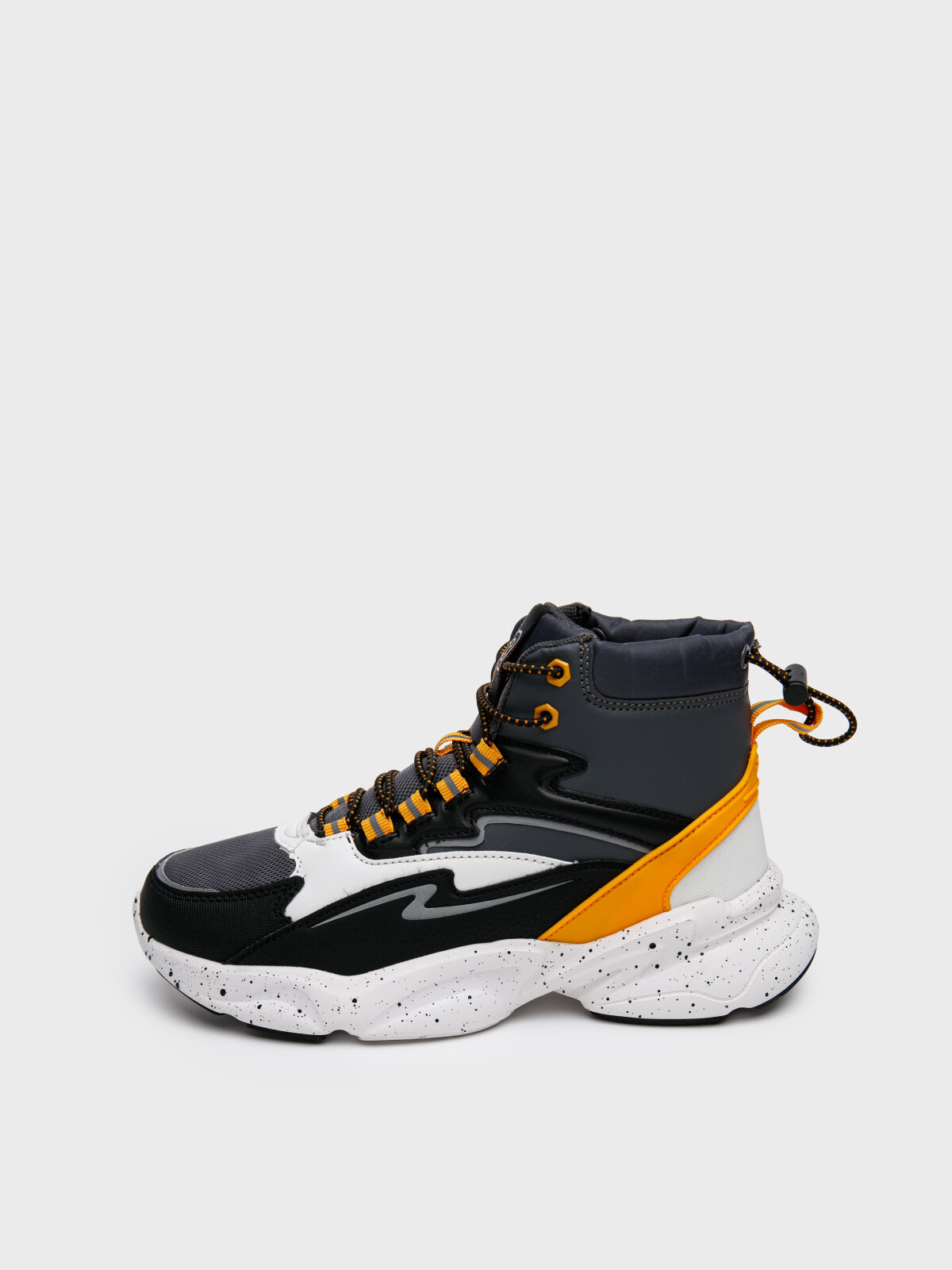 Стильные высокие кроссовки для мальчика подростка. Ботинки выполнены из искусственной кожи, обладающей высокими эксплуатационными свойствами, и дышащего текстиля. Носочная часть усилена специальным защитным материалом. Ботинки имеют эластичные шнурки с утяжкой сзади. В носочной части обуви стоит текстильная подкладка c высоким содержанием хлопка 80%, которая обладает высокой гигроскопичностью. В пяточной части обуви текстильная подкладка обладает хорошей износостойкостью. Двухсоставная подошва из ЭВА и ТПР легкая и гибкая. Вставки из ТПР в носочной и пяточной частях предотвращают быстрый износ подошвы и делают ее нескользкой. Профилированная стелька из свиной кожи с анатомической формой подсводника обеспечивает правильную нагрузку на стопу. Формоустойчивый задник поддерживает стопу в правильном положении. Эргономичная форма колодки обеспечивает правильное формирование стопы ребенка. Наличие светоотражающих элементов.