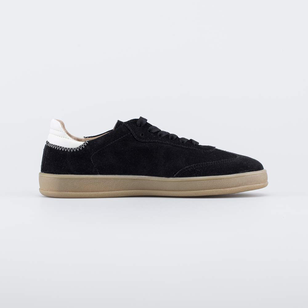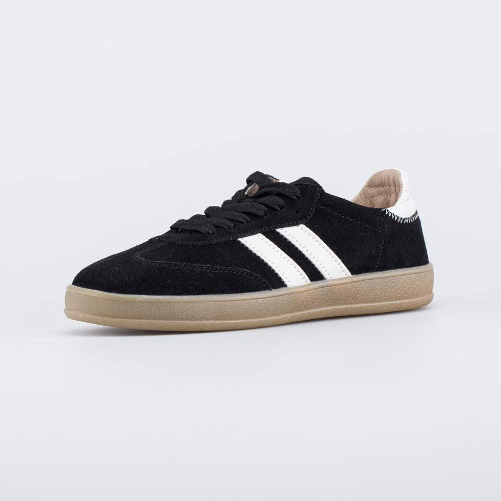 Полуботинки-кеды для мальчика-подростка выполнены в черном цвете, который эффектно дополнен бежевой подошвой.
