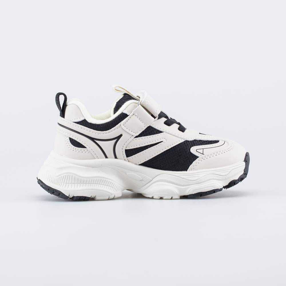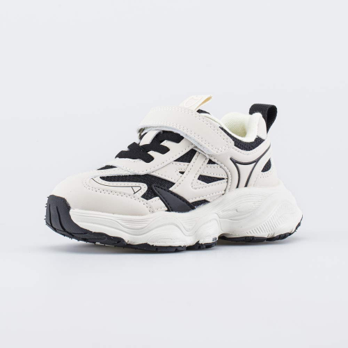 Удобные кроссовки для мальчика выполнены в сочетании контрастных цветов: черного и бежевого.