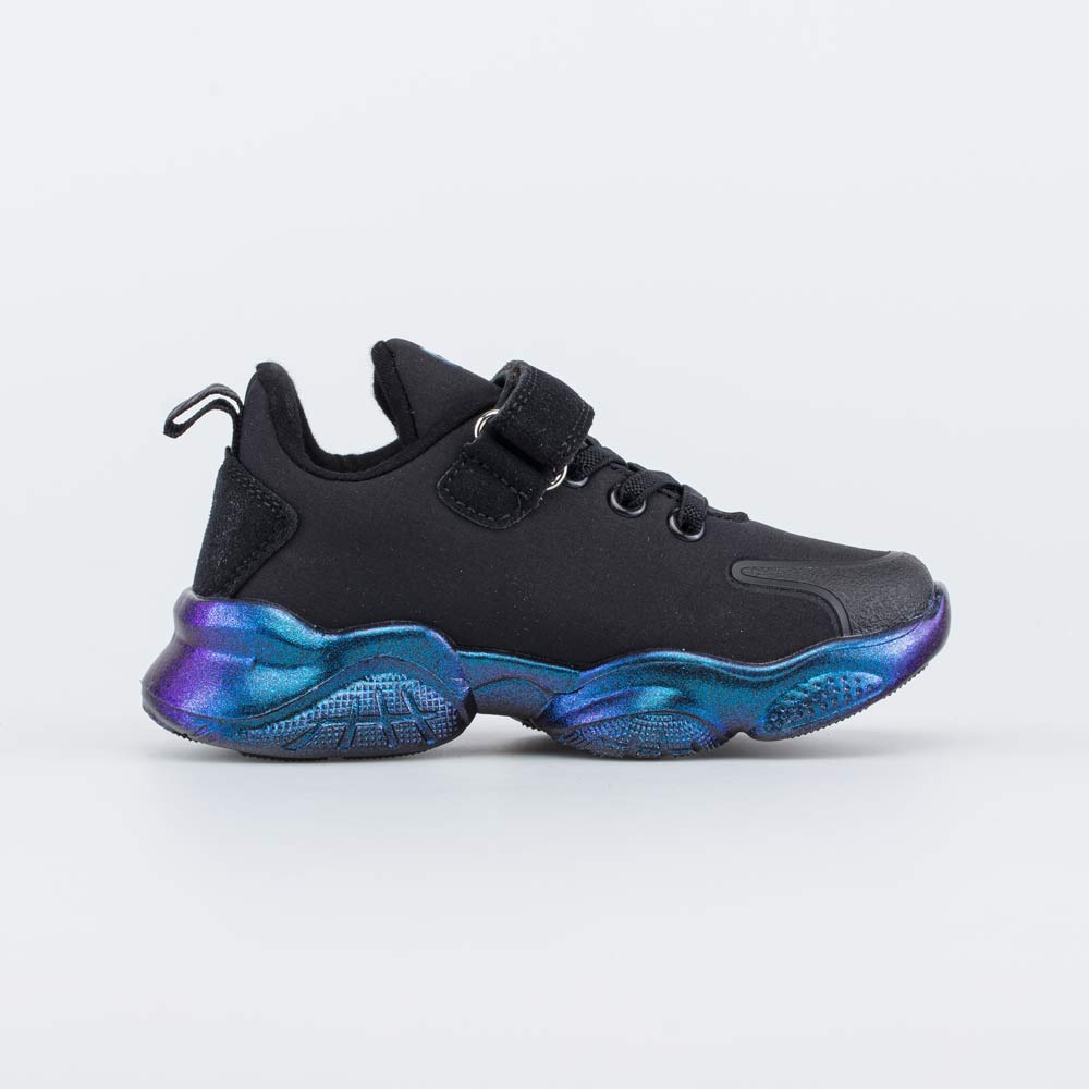 Кроссовки для девочки SoftShell, выполненные в сочетании черного с синим перламутром