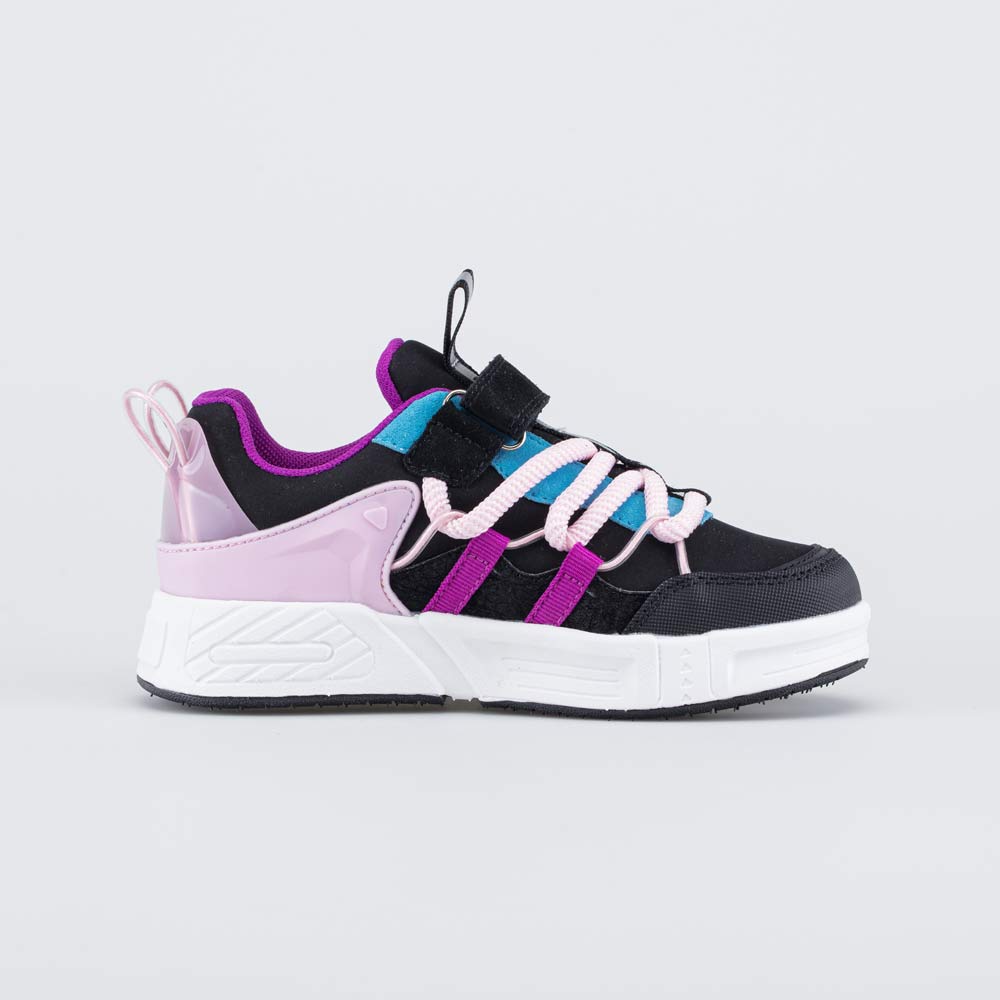 Липучки из искусственной кожи-велюра позволяют быстро обуваться и разуваться, а объемные шнурки становятся эффектной изюминкой модели.