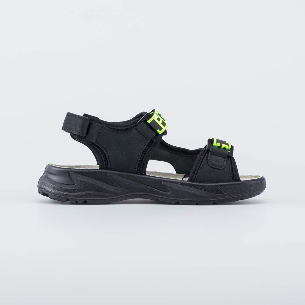 Сандалии, выполненные в сочетании лаконичного черного и яркого желтого, подходят для мальчика-подростка.