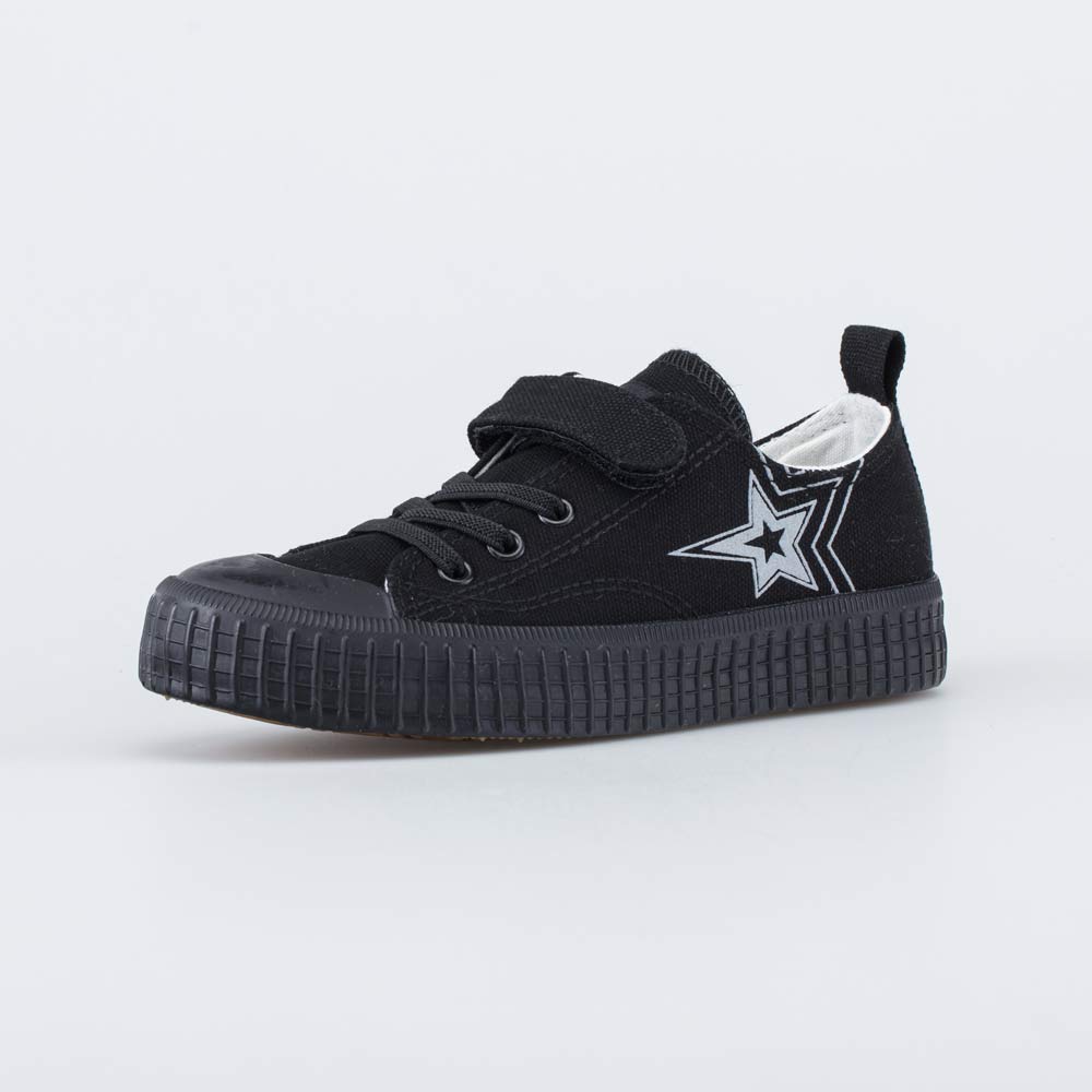 Стильные черные кеды с верхом и подкладкой из хлопка подходят для мальчика.