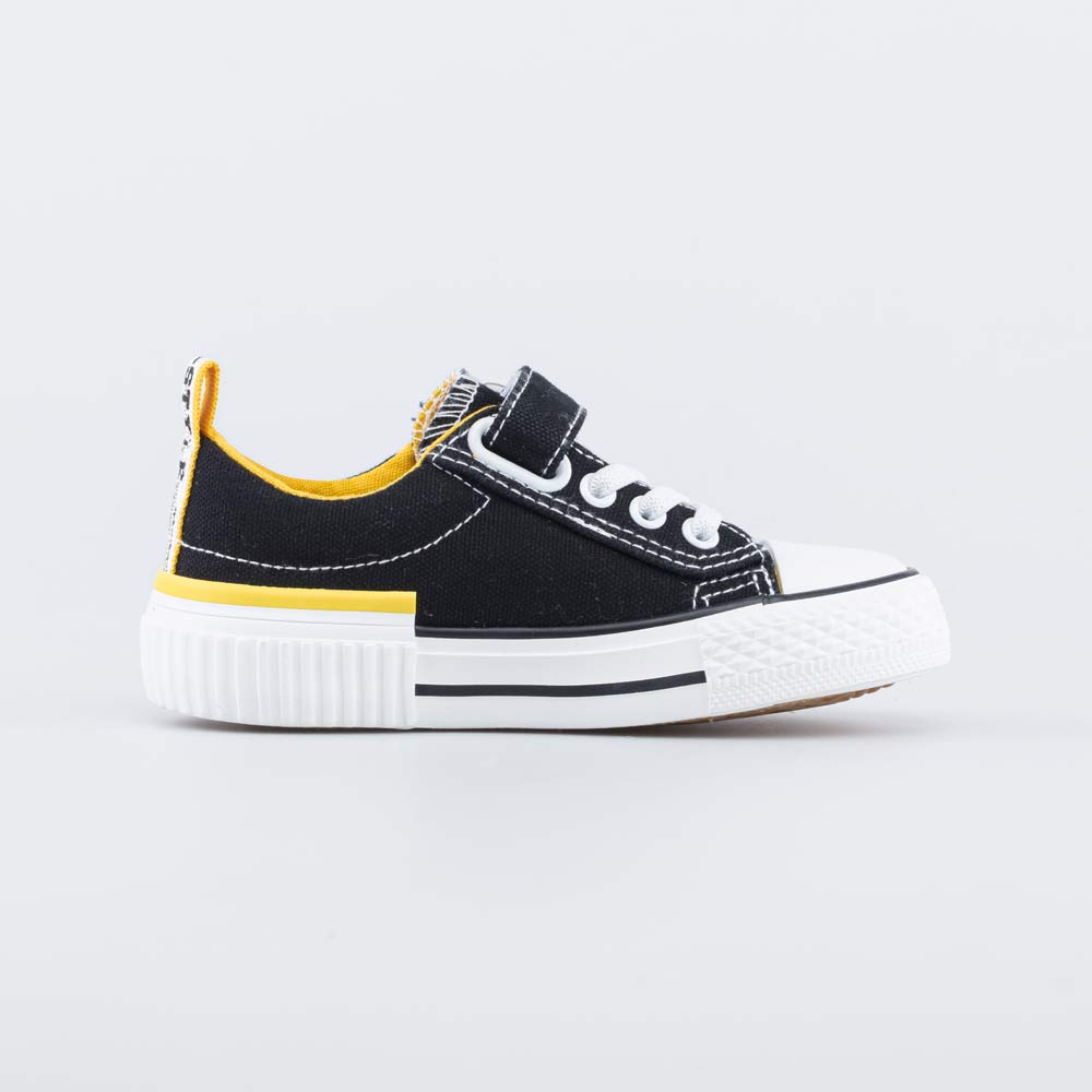 Черные кеды с белой подошвой отлично подходят для прогулок на свежем воздухе, а также в качестве сменной обуви.